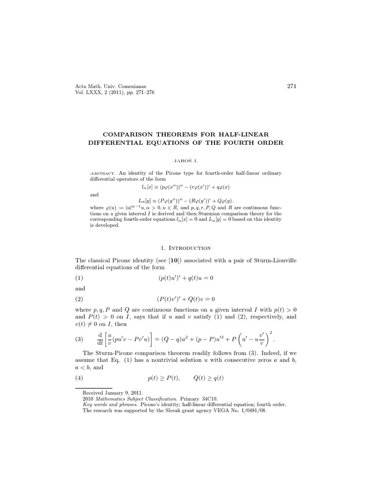 Pdf Comparison Theorems For Half Linear Differential Equations Of The Fourth Order